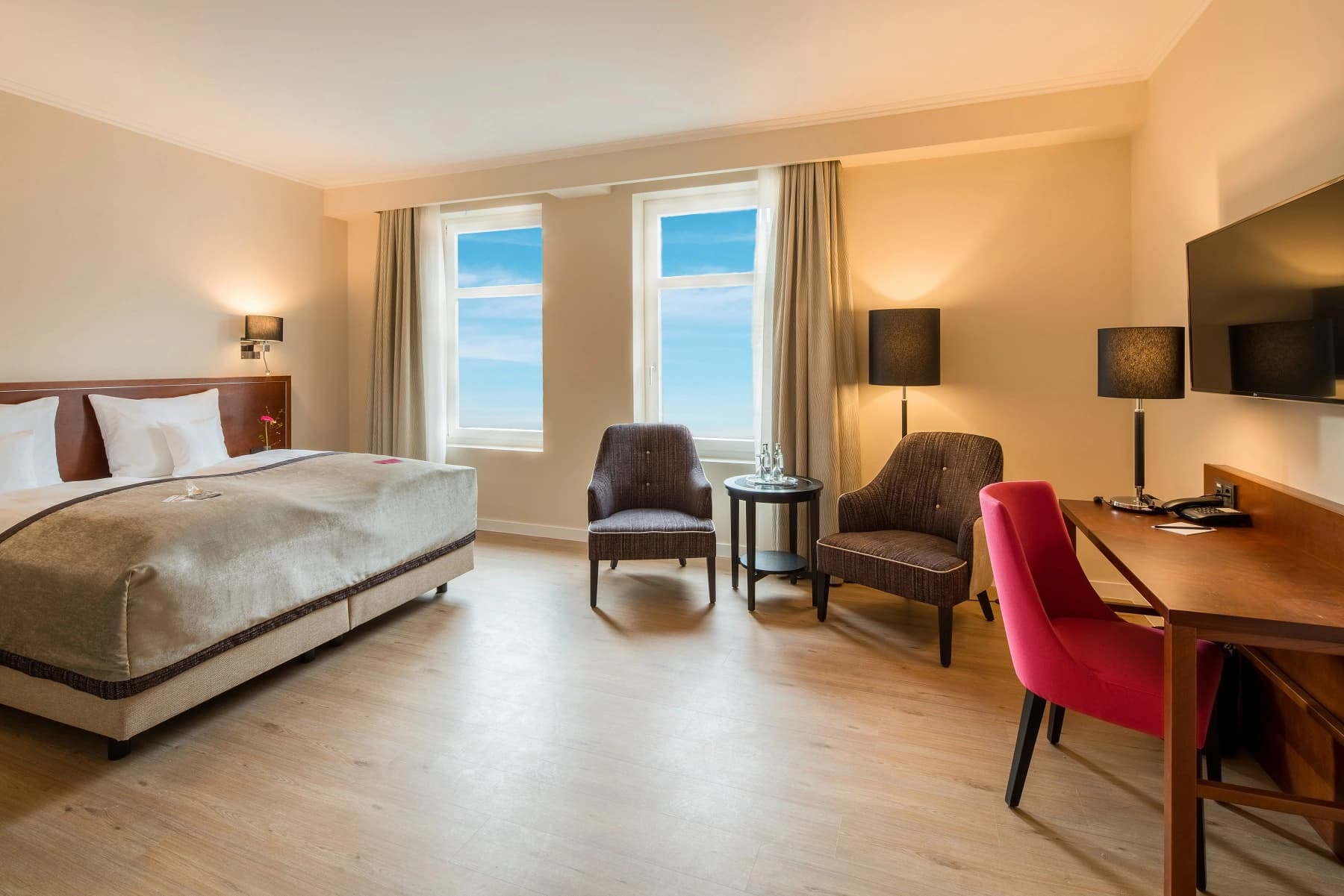 Das Best Western Plus Hotel Excelsior ist ein Vier-Sterne-Hotel im Herzen von Erfurt. Mit seiner günstigen Lage befindet sich das Hotel in der Nähe vieler beliebter Sehenswürdigkeiten, Restaurants und Geschäfte sowie des Hauptbahnhofs. Wir bieten geräumige Zimmer und Suiten, die jeweils mit Annehmlichkeiten wie kostenfreiem WLAN, Flachbild-TVs und eigenem Bad ausgestattet sind. Das Hotel verfügt ebenfalls über eine Bar, einen Massageservice, eine Leseecke und eine Sauna, um den Gästen einen rundum angenehmen Aufenthalt zu bieten. Ganz gleich was Sie in unsere schöne Hauptstadt führt – wir freuen uns auf Sie und tun unser Bestes damit Sie sich wie zuhause fühlen.